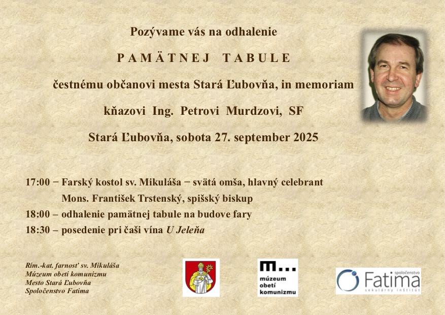 Peter Murdza, čestný občan mesta Stará Ľubovňa, bude mať na budove fary pamätnú tabuľu.