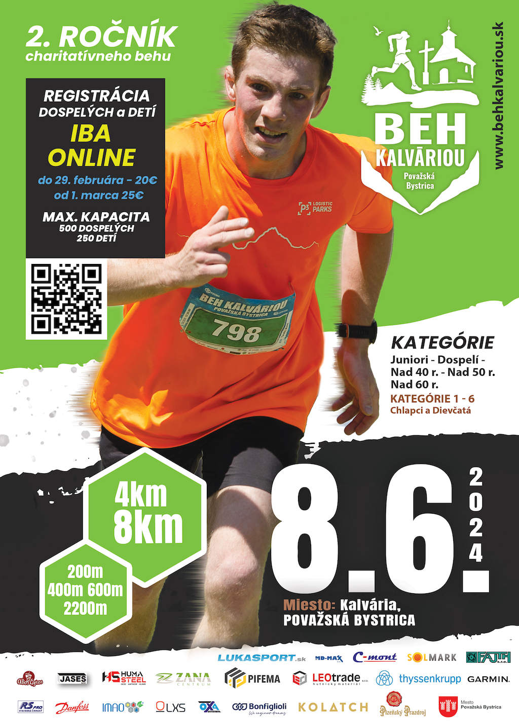 Po ďalšom vydarenom ročníku sa aj tohto roku uskutoční v Považskej Bystrici 8.6.2024 charitatívny Beh Kalváriou, ktorého výťažok bude venovaný Mirkovi a Zarke na podporu ich finančne náročnej liečby.
