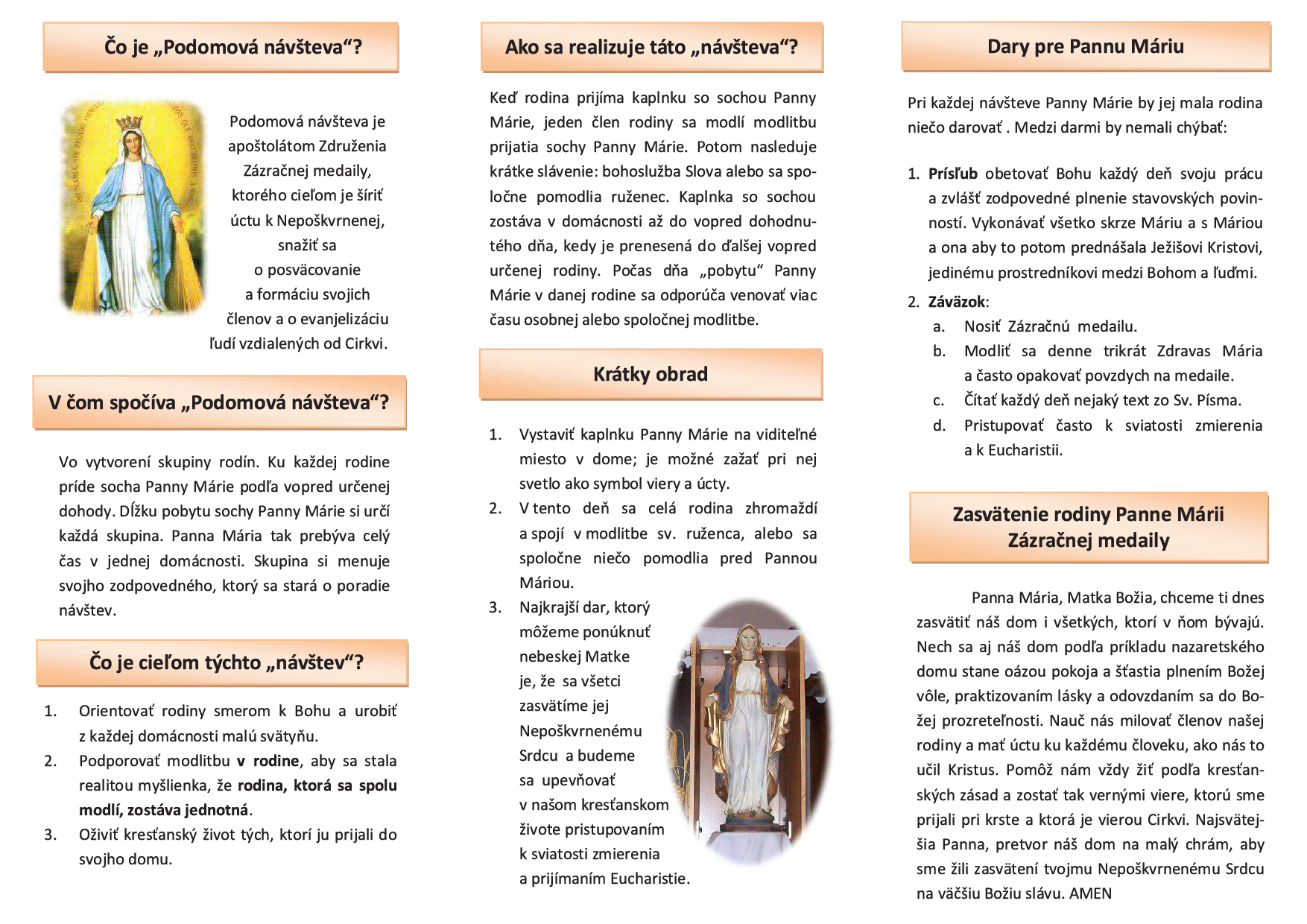 "Podomová návšteva"  Panny Márie Zázračnej medaily